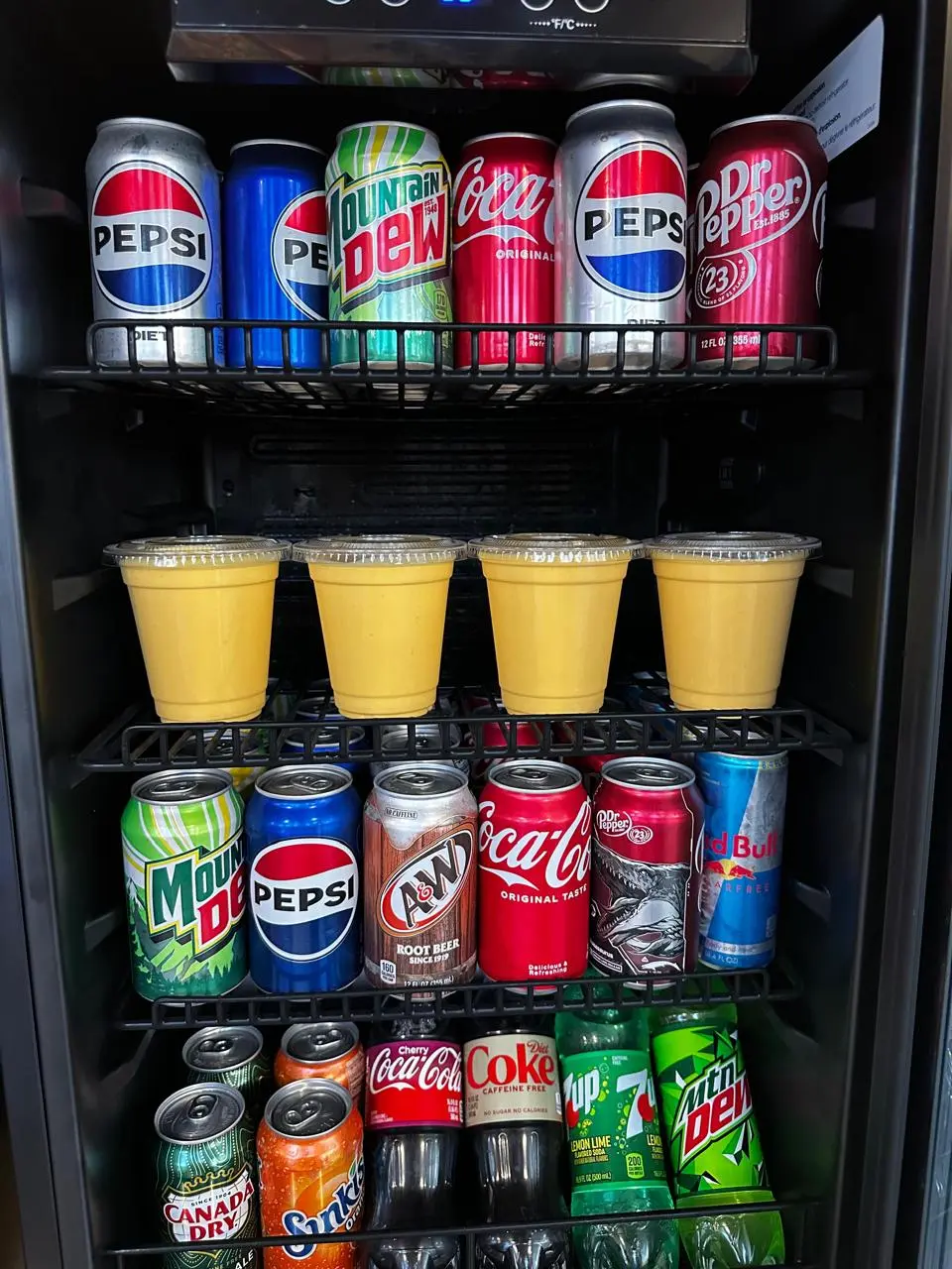 Pepsi, Diet Pepsi, Dr. Pepper, lemonade, Sierra Mist, Mountain Dew (one time refill)
