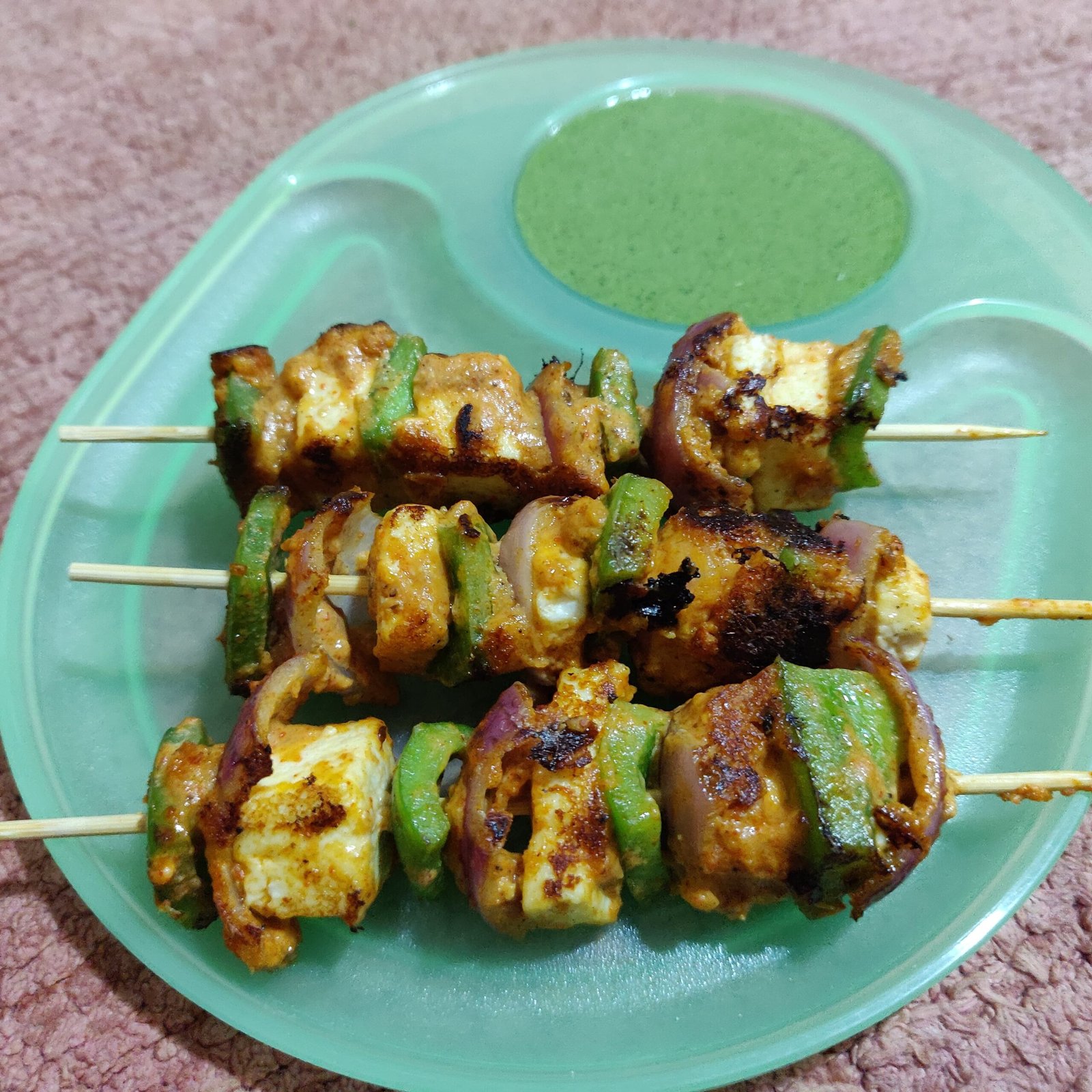 Chicken marinated in yogurt and roasted on skewers in a clay oven (4 pieces) served with masala sauce