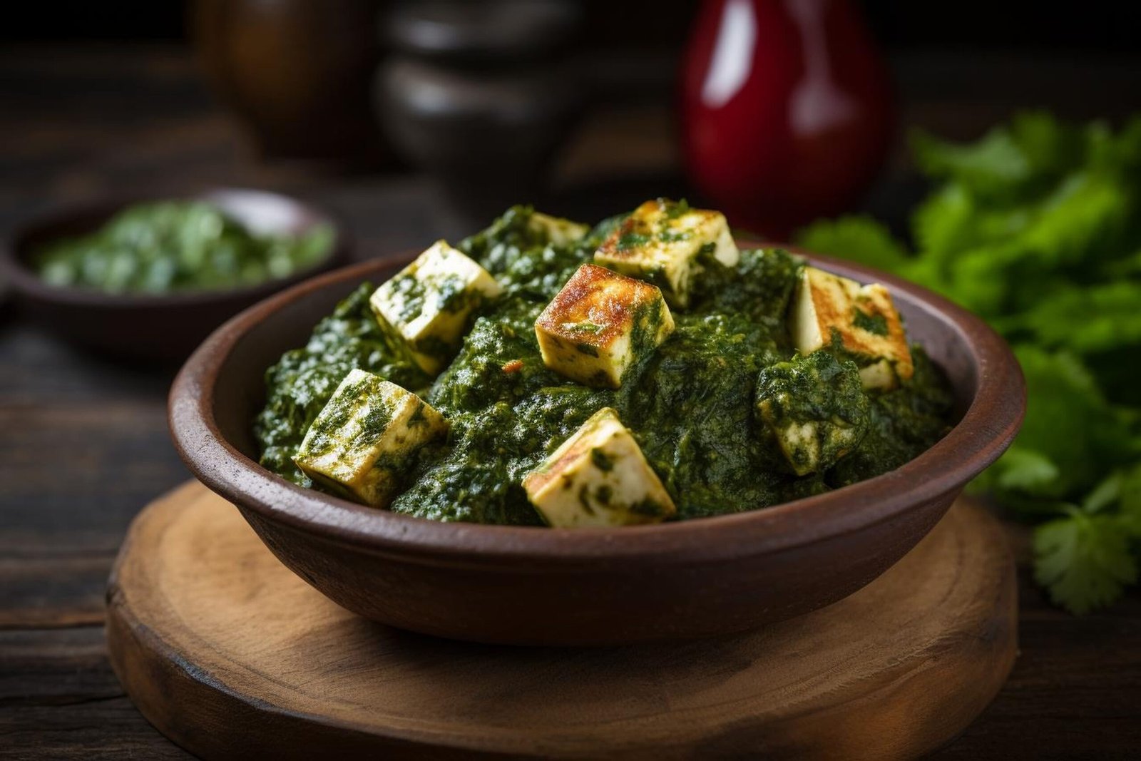 Spinach and potatoes cooked with spices