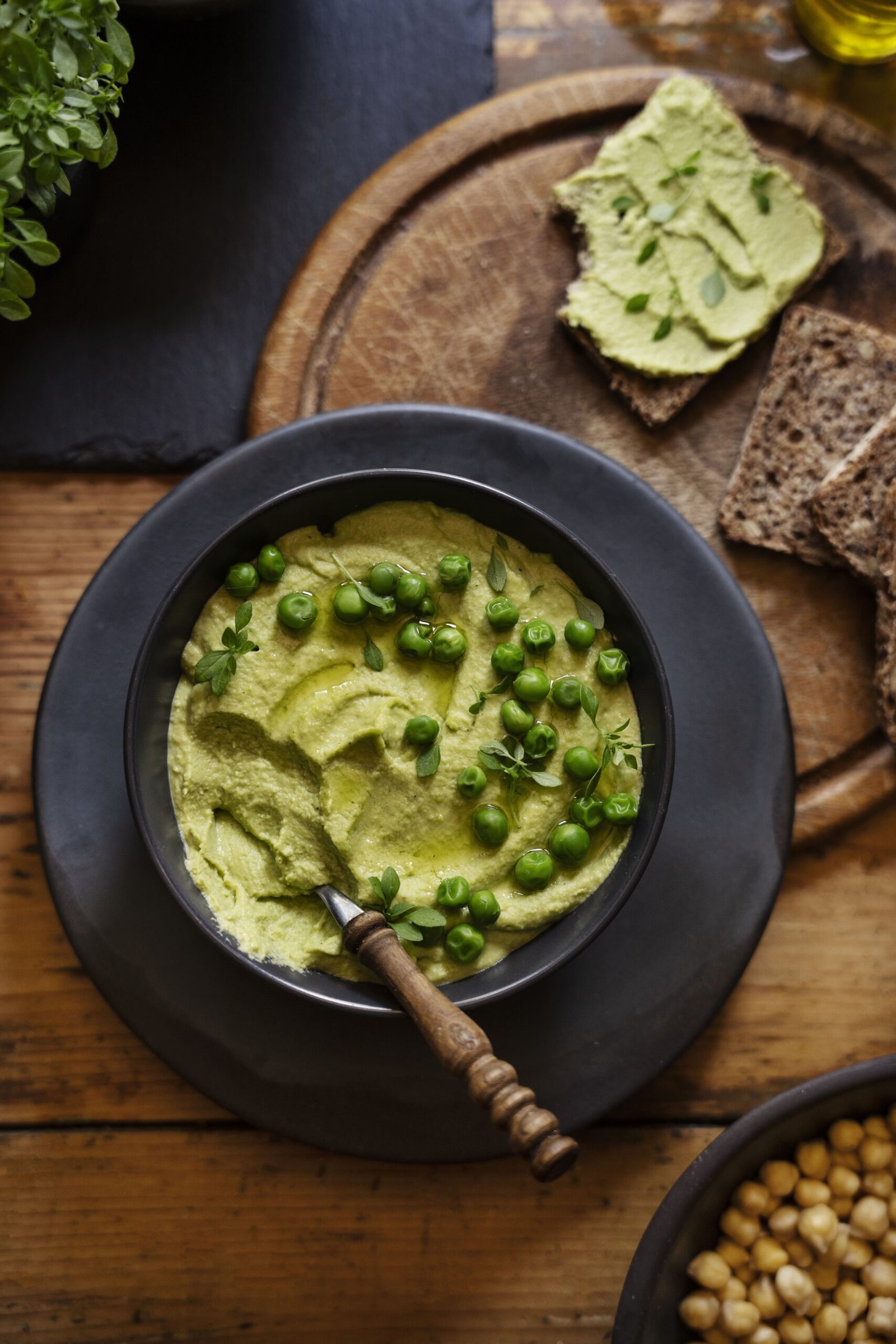Green peas cooked with creamed spinach
